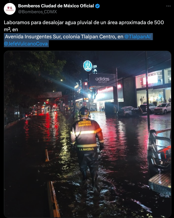 Vecinos reportan fuertes encharcamientos además de la caída de agua en zonas altas. Videos recopilados por @TlalpanVecinos: