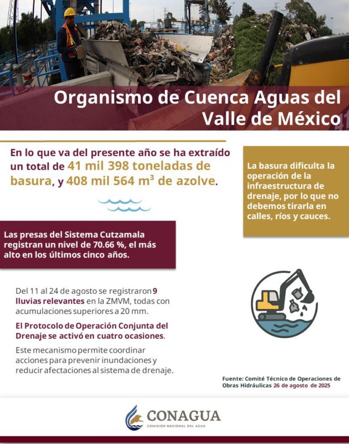 “Además, se pusieron en marcha estrategias de ahorro y uso eficiente del agua, en colaboración con autoridades de la Ciudad de México, mediante la Secretaría de Gestión Integral del Agua, y del Estado de México, con la Comisión del Agua del Estado de México”.
